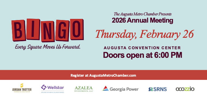 Augusta, GA (February 18, 2026) – Augusta Metro Chamber of Commerce will host its 117th Annual Meeting, BINGO: Each Square Moves Us Forward, on Thursday, February 26, 2026, unveiling the Chamber’s 2-Year Strategic Roadmap through an interactive, BINGO-inspired experience designed to engage, connect, and advance the regional business community.
